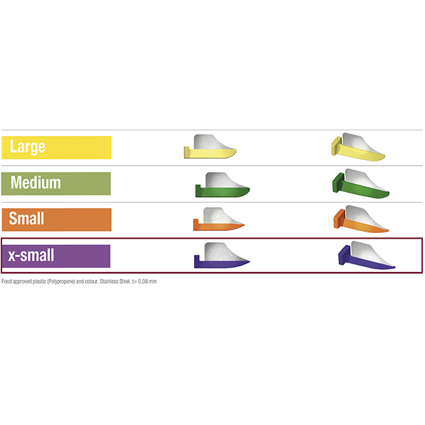 Plastkiler med monteret proxitector. FenderWedge forhindrer boreskader på den tilstødende tand og tandkød. X-small, lilla.