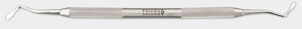 Pochepakningsinstrument rustfrit stål dobbeltendet med riflede kanter og med 1 sæt griberiller i siderne.