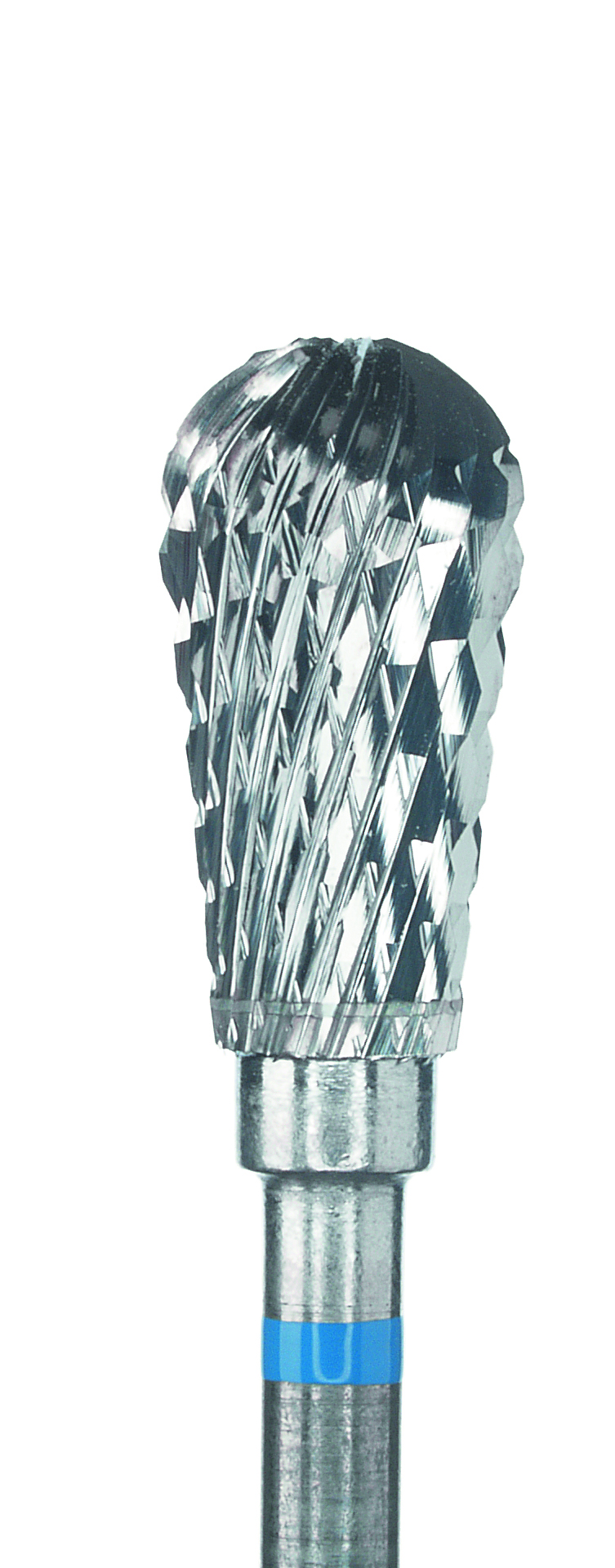 Pæreformet fræser 11,7mm Blå mediumkornet med krydsrelief, ISO 104.060 med håndstykkegreb.