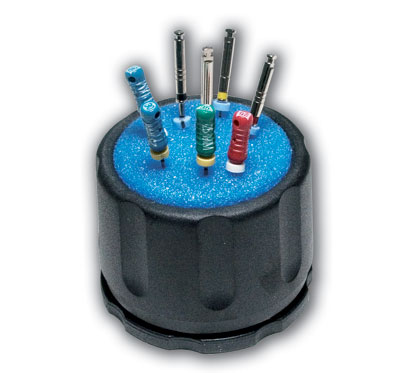 Filholder i hård plast til midlertidig opbevaring og let rensning af endo-instrumenter.
