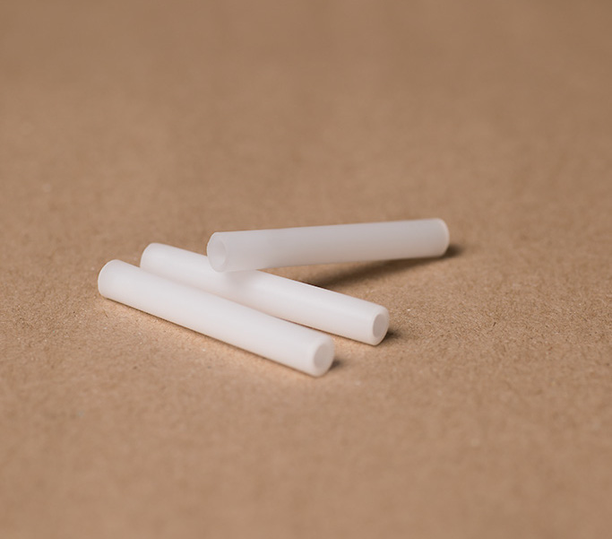 Adaptere i biobaseret polyethylen, hvide, blød plast, til engangsbrug.