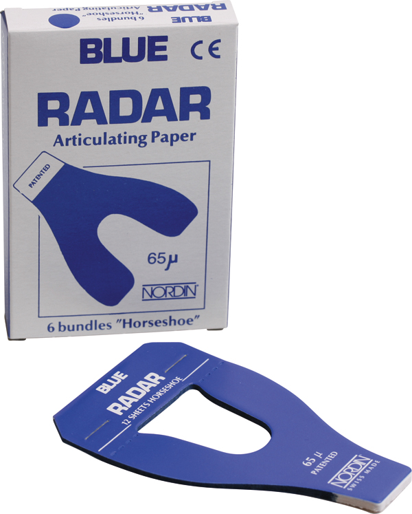 Papir til okklusions-/artikulationskontrol, hesteskoformet, blå, 65 my.