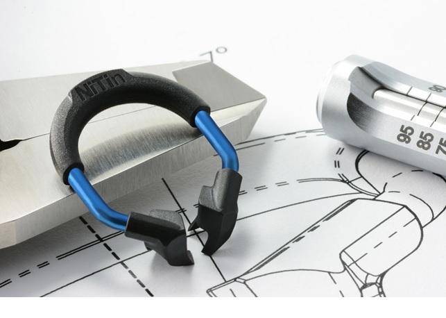 Retentionsring i Drawn Nickel-Titanium , der giver en stærkere og mere holdbar ring, med forstærkning i PEEK polymer (polyether ether ketone), der yderligere forstærker ringen og forbedrer dens holdbarhed og fleksibilitet, og med anatomisk formet PEEK polymer på fødderne, der giver et godt greb om tanden. Sort/blå, med længere ben til molarer. Rengøring: sæbevand, autoklavering og opvaskemaskine.