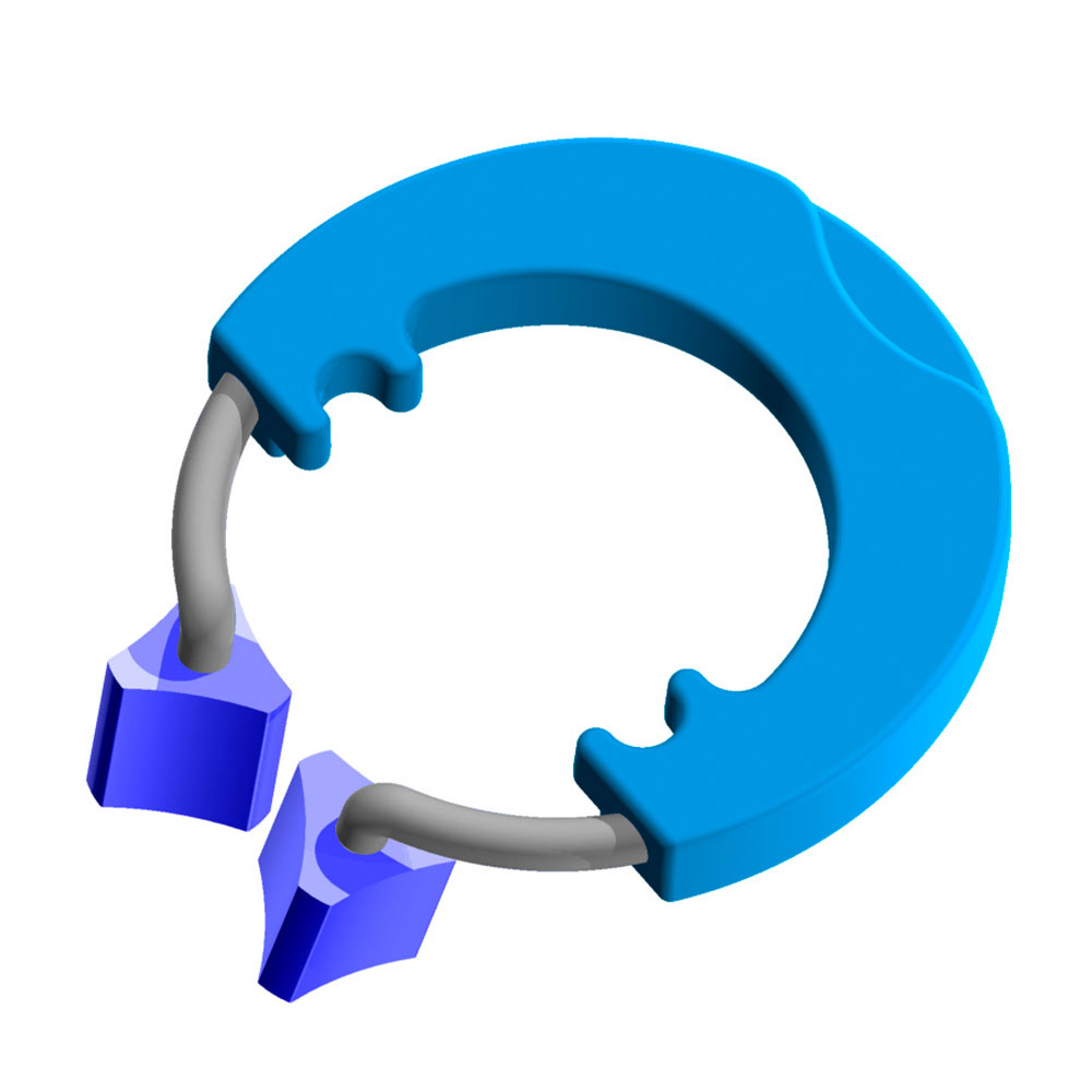 Sektionsmatriceringe, med forstærkning i hård plast og runde ben, medfølgende "fødder" Delta Tubes i blå silikone, som påsættes på ringen for bedre tilpasningtil kuvaturen.