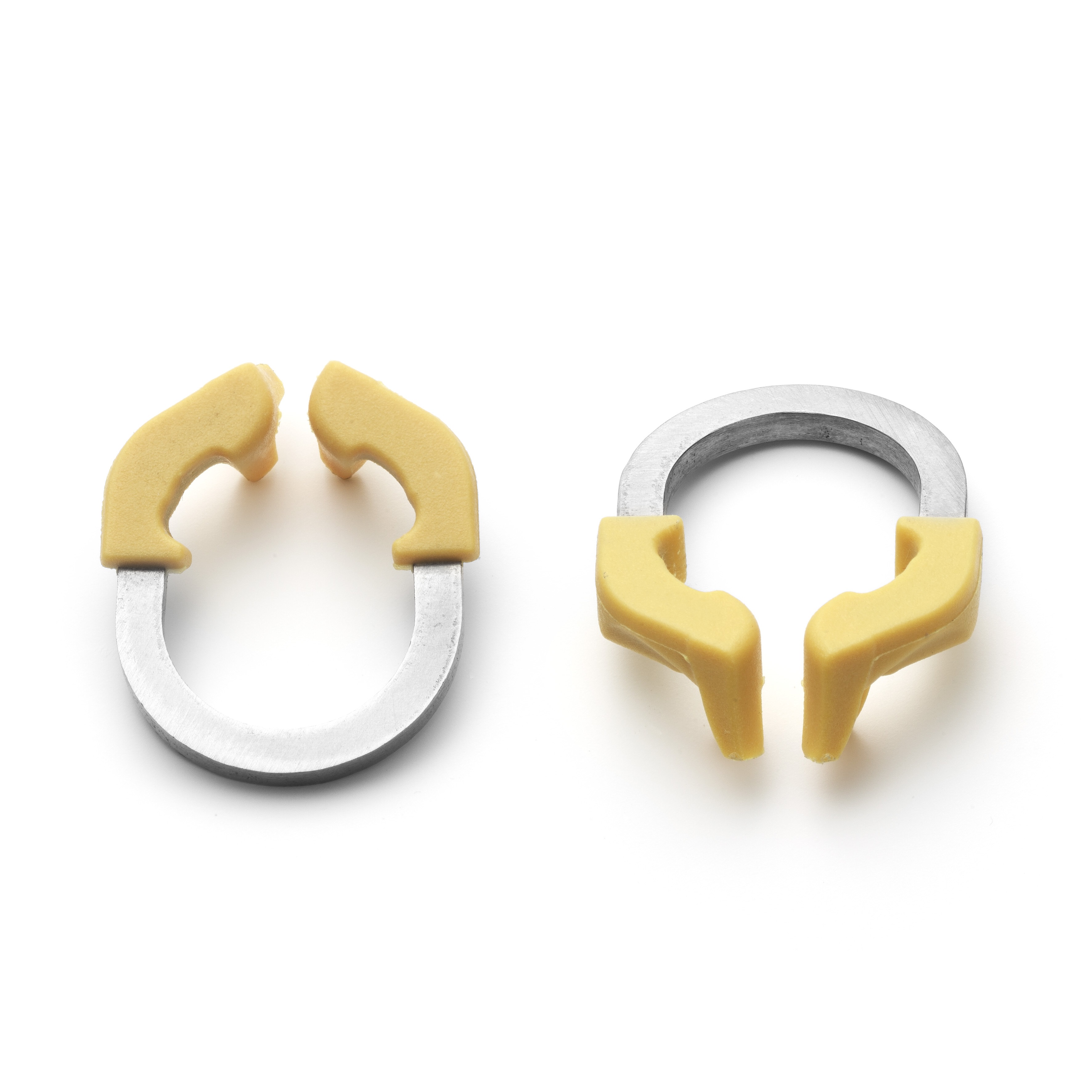 SMS gul smal ring, Kvalitet sektionsmatriceringe som ikke er støbte men udfræsede og med mindre frakturrisiko. Rengøring: sæbevand og autoklavering, tåler IKKE sprit eller opvaskemaskine.
