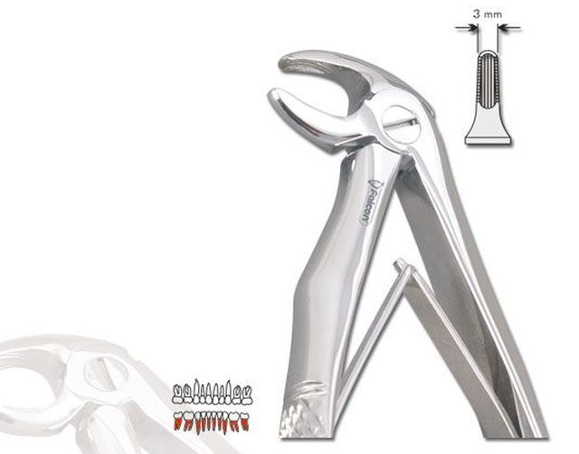 Ekstraktionstang nr. 7 til børn (til rødder underkæbe) med fjederudveksling. Rustfrit stål.