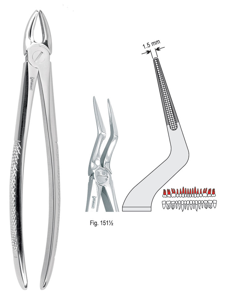 Til overkæbe med smalle kæber, 1,5 mm i spidsen, rustfrit stål