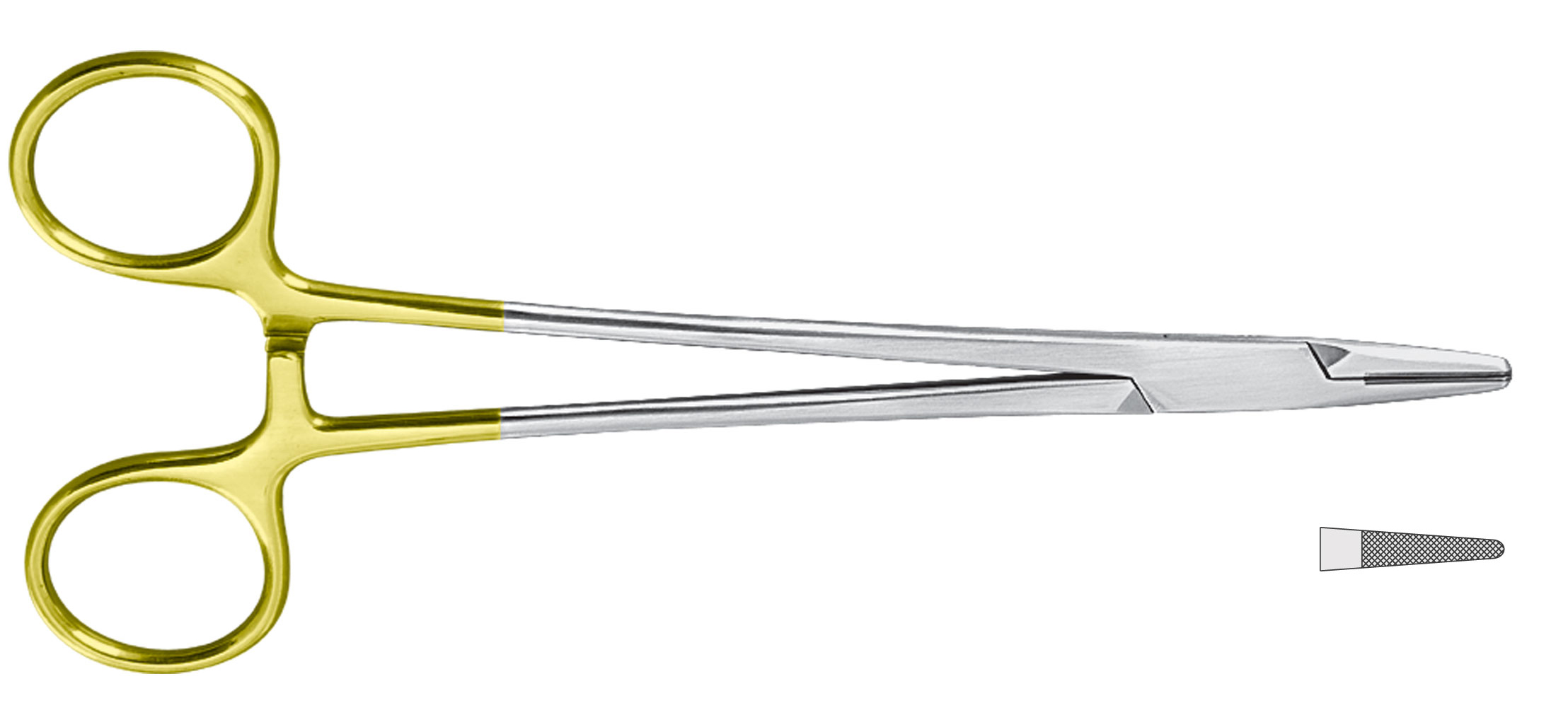 Mayo-Hegar nåleholder med lige hårdmetalkæber. Længde 18 cm.