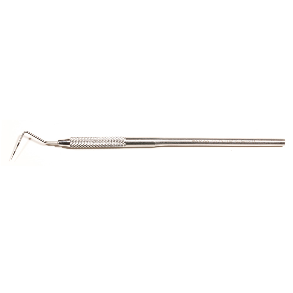 Rustfrit stål instrument med påtrykte sorte farvemarkeringer. Farvemarkeringer vil falme med tiden. Undgå dentalopvasker/mikrobølgeovn da det vil øge hastigheden af farvemarkeringernes falmen. Varen tåler ikke sprit eller kemisk rensning og opløsninger med pH over 8. - F.eks. må der ikke bruges sprit, borrens eller dentalopvasker. Rengøres med vand og sæbe og autoklaveres.