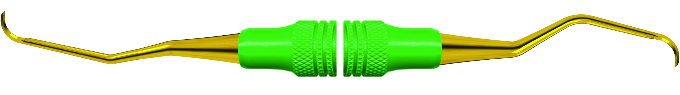 Curette, Dobbel Gracey Mini Anterior, til fortænder med grønt greb og guldfarvede ender. OBS: Må ikke slibes. AEDGMAXPX