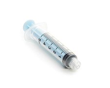 Engangssprøjter, latexfri, med indvendigt gevind, til kanyler med luer fatning, holder kanylen bedre fast, 5 ml, farvekodet med blåt stempel.