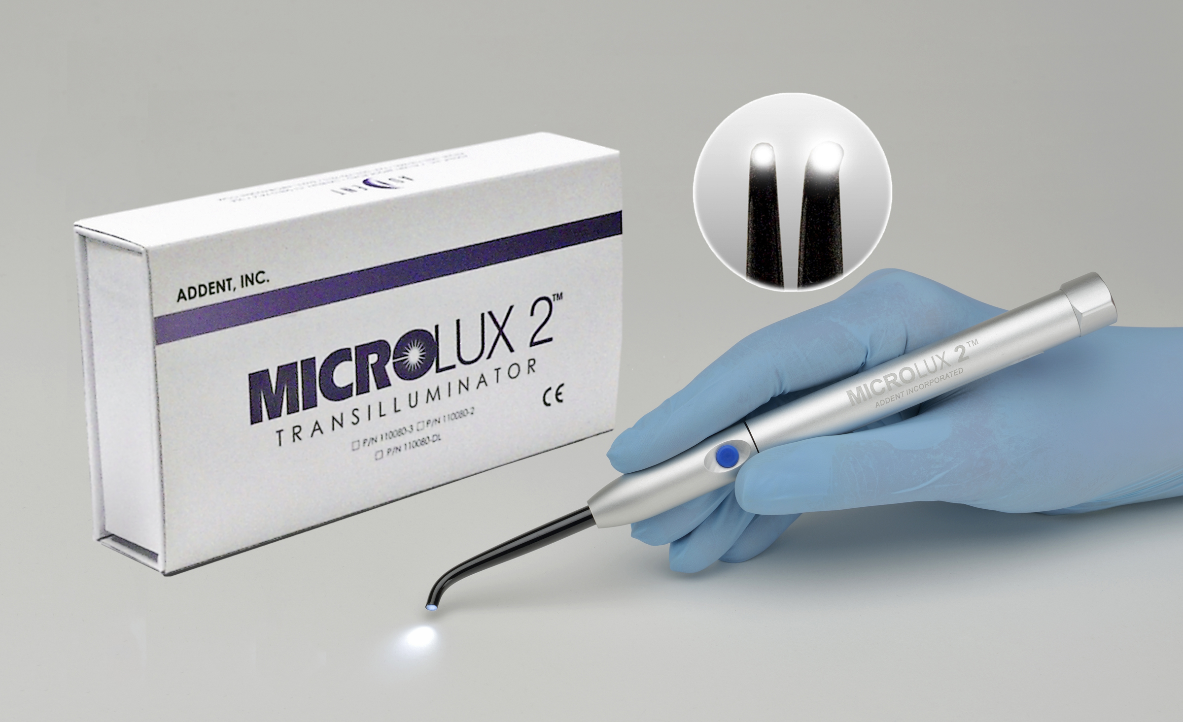 Lysleder håndholdt med 3 mm lysleder. Med batterier til lokalisering af kronefrakturer, rodkanalåbninger, karies etc. Foto viser 2 og 3 mm lysleder. Til dette varenummer følger kun 3 mm lysleder.