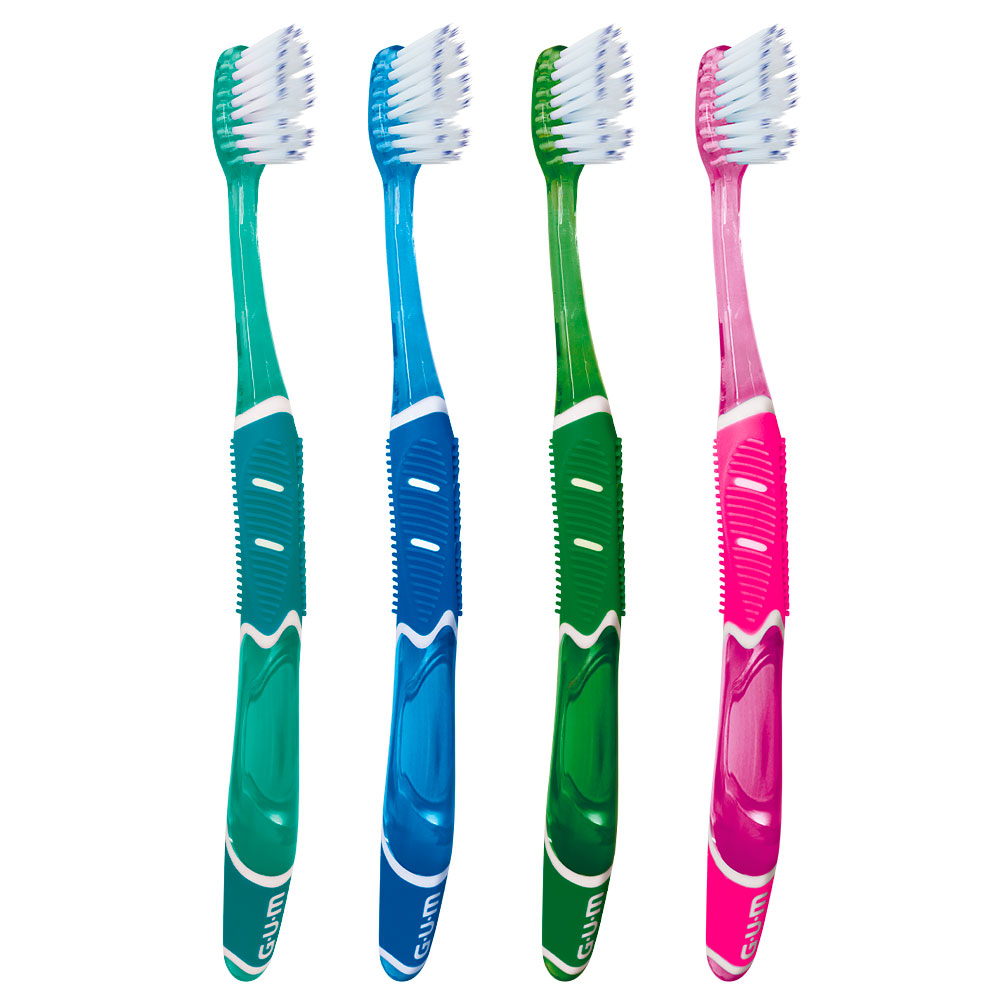 GUM PRO Tandbørste fås i fire forskellige farver, fjerner effektivt plak på svært tilgængelige områder.