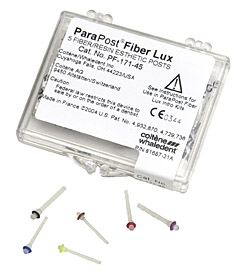 Lysførende, translucente glasfiberstifter, cylindriske med 2-delt rundt hoved, til brug med lyshærdende cement. Velegnede til æstetiske fortandsrestaureringer. Anvendes med det tilsvarende ParaPost XP bor. PF-171-5, str. 5, rød, refill.