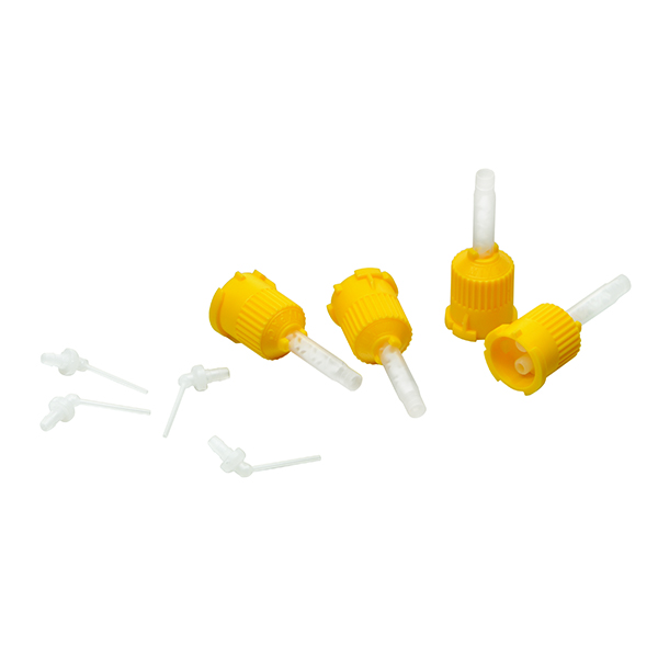 Blandespidser, lige afskåret med gult gevind og hvid spiral samt endospidser til påsætning på blandespidsen, passer til bl.a. RelyX Unicem 2 Automix.