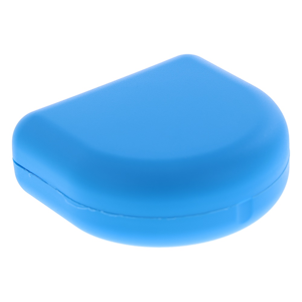 Plastæsker/opbevaringsæsker til bideskinner eller proteser, blå, model Braces, størrelse 7,8 x 7,3 cm, højde 3 cm.