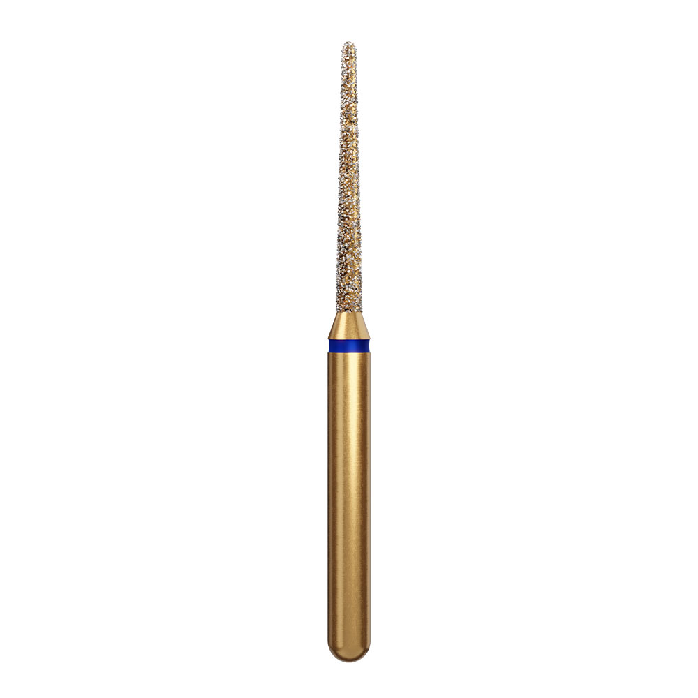 Diamantbor til præparation, til FG, medium med blå ring, lang konisk med afrundet spids, hovedlængde 10 mm, 856L/012 ML.