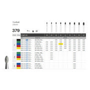 Diamantbor med flere diamantlag i den skærende del, så boret er mere holdbart, effektivt og stabilt. Med "Multilayer Diamond Instrument Guarantee" som er producentens garanti for et bor med en god skære-evne over længere tid. Til præparation, til FG, amerikansk fodbold/æg-formet, medium med blå ring, hovedlængde 3,5 mm, 277/018 M (379).
