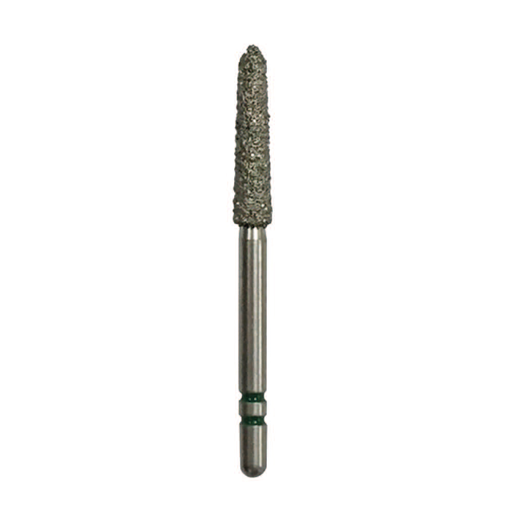Grov (grøn ring). Flammeformet, ISO 298/018. Two Striper diamantbor er med god grund Verdens mest solgte diamantbor. 3-4 gange længere holdbarhed i.f.t. konventionelle diamantbor Skærer hurtigere ! Bedre end-cutting Diamantkrystaller er jævnt fordelt Prøv dem! Two Striper diamantbor til airrotor, FG, sælges i pakninger med 5 stk