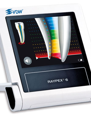 Apexlokator til præcis rodlængdelokalisering i hightech design med 3D farvetouchscreen, detaljeret visning af den apikale del af kanalen herunder visualisering af den apikale konstriktion. Unik 3D touchscreen gør det nemt at indstille funktionerne, eksempelvis lydsignal og baggrundsfarve. Kompakt, kan foldes sammen, indbygget demo-program, automatisk funktionschek af f.eks. kablerne, genopladeligt batteri.