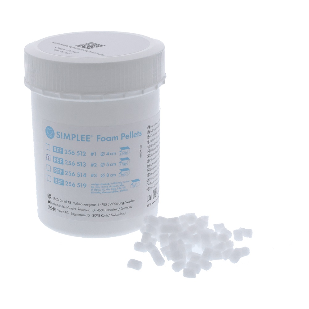 Skumpellets i polyester skum, nr. 2, runde, diameter 5 mm, til applicering af syregel, primer, bond og lignende, til engangsbrug, kan autoklaveres.