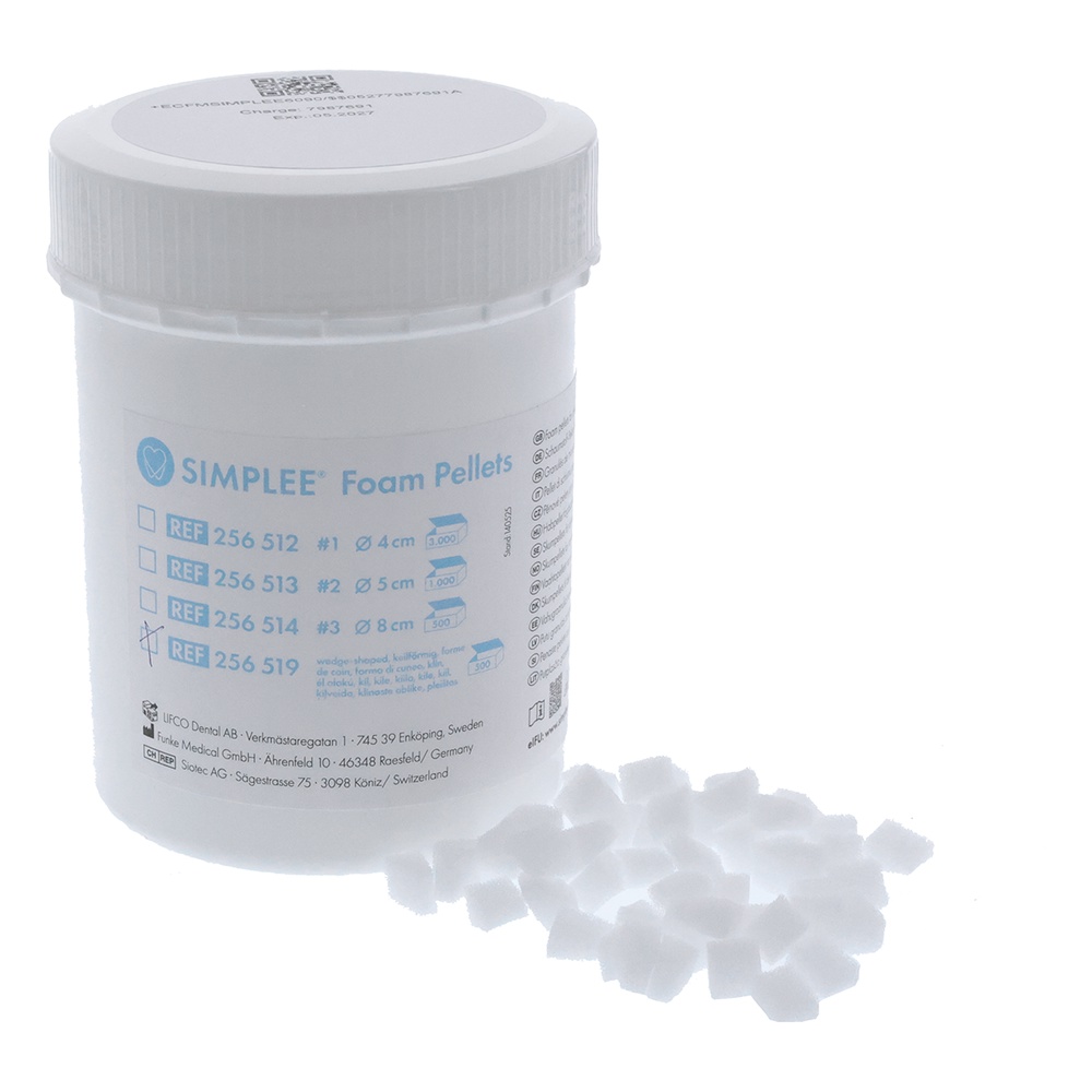Skumpellets i polyester skum, kileformede, 8 x 6 mm, til applicering af syregel, primer, bond og lignende, til engangsbrug, kan autoklaveres.
