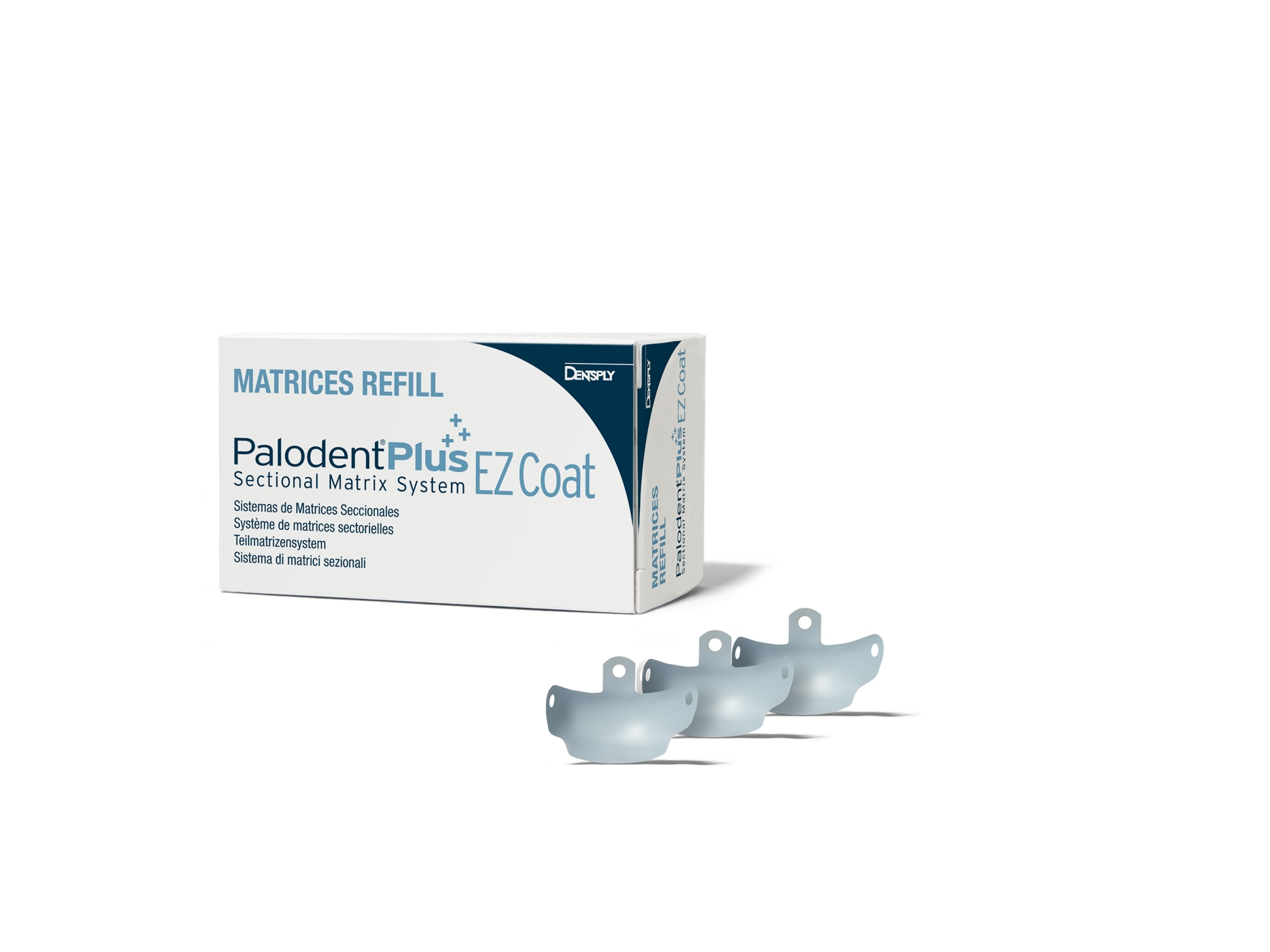 Med non-stick coating. Forkonturerede med hul og vinge, str. 6,5 mm til dybe og store kaviteter i molarer hvor der mangler cusp. Lyseblå. Tykkelse 0,036 mm.