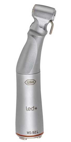 Kirurgivinkelstykke, WS-92 LG, udveksling 1:2,7 opgearing, med rød markering FG, 3-huls spray, med LED lys og trykknapborskifte. Ergonomisk med fingerpositionering, ridsefri belægning i rustfrit stål, Kan adskilles for optimal rengøring og vedligeholdelse. Maksimal omdrejningstal: 40.000 rpm. Tåler dental opvaskemaskine og autoklavering.