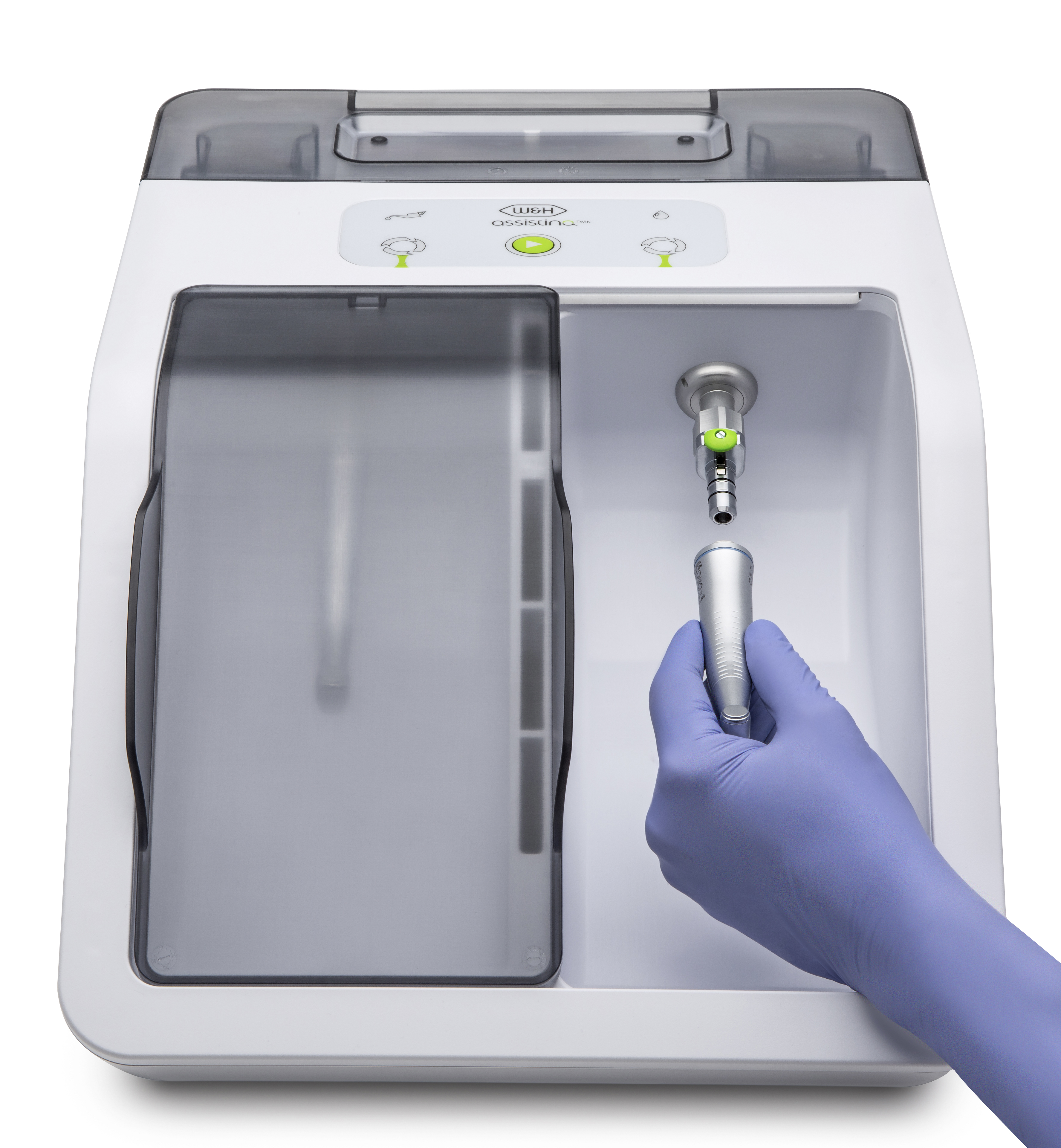 Maskine til intern og ekstern rensning og smøring af turbiner, hånd- og vinkelstykker, tager kun 10 sek. pr. instrument, tilsluttes 5-10 bar, med udsugning og filter. Ring altid for dagens tilbud.