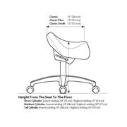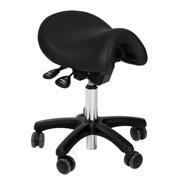 Saddelstol med sort læder og standard sæde og lav stol (passer til cirka 1,60 m.) Længde på sædet 33cm - Bredde på sædet 33cm på den bredeste del - 19cm på den foreste del